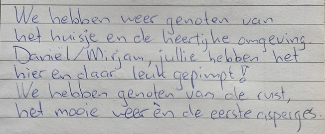 Wil je voor een familieweekend een paar huisjes dicht bij elkaar huren, laat het weten. Wij hebben goede contacten met eigenaren van omliggende huisjes.